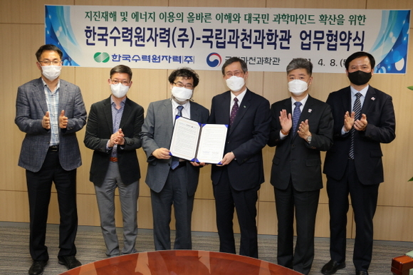 이날 서면으로 체결된 협약을 통해 국립과천과학관 내 설치, 운영 중인 지진 체험시설(하드웨어, 소프트웨어 등)을 한수원이 주관해 교체한다. 과학관은 향후 10년간 시설의 원활한 운영을 통해 지진 등 자연재해와 에너지 이용에 대한 국민 이해 등을 위해 노력하기로 했다.