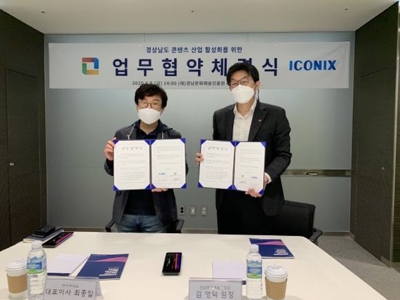 경남문화예술진흥원이 9일 경남 콘텐츠산업 활성화를 위해 ㈜아이코닉스와 업무협약을 체결했다.