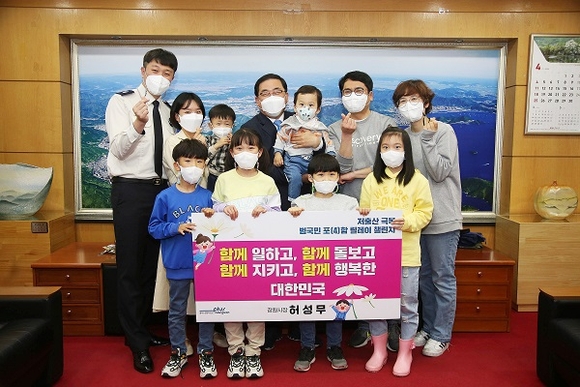 강석주 통영시장으로부터 챌린지 지명을 받은 허성무 시장은 이날 다자녀를 둔 시청 직원 두 가족을 초대해 챌린지에 함께했다.