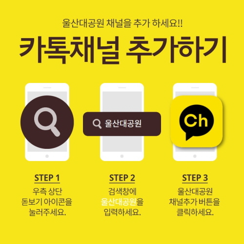 울산시설공단 울산대공원이 시민들에게 빠르고 편리한 소통 및 정보 전달을 위해 공식 카카오톡 채널을 개설했다. 공단은 이번 울산대공원 카카오톡 채널 개설을 통해 시민들이 이용정보 및 소식을 빠르게 확인하고 단순 문의는 1:1 채팅 기능을 이용해 전화보다 빠르고 편리하게 답변받을 수 있을 것이라고 전했다. 울산대공원 카카오톡 채널은 카카오톡 검색창에 ‘울산대공원’ 검색 후 채널 추가 버튼을 눌러 이용할 수 있다.