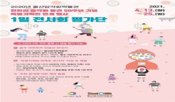 울산암각화박물관은 천전리 암각화 발견 50주년 기념 특별기획전 ‘바위의 기억, 염원의 기록’ 연계 행사로 ‘1일 전시회 평가단’을 운영한다.