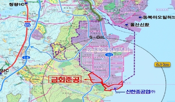 울산시는 온산국가산업단지 내 ‘강양‧우봉 산업단지 조성사업’을 15일자로 최종 준공 인가한다고 밝혔다.