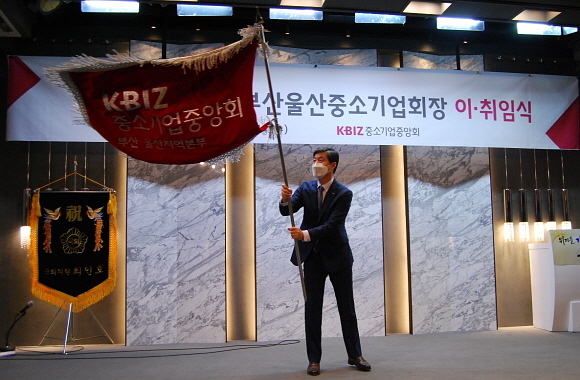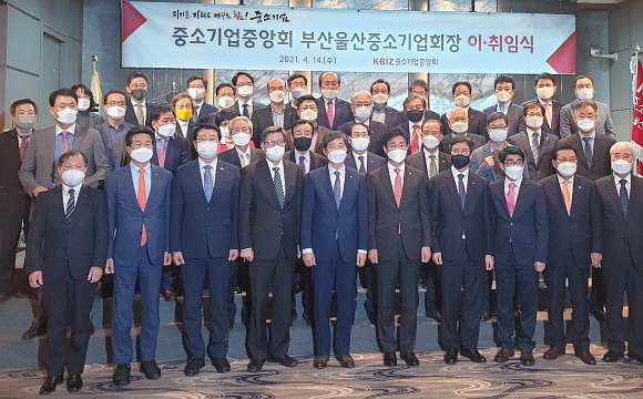 중소기업중앙회(중기중앙회) 부산울산지역본부(부울본부)가 14일 부산 코모도호텔 그랜드볼룸에서 9대 회장 이·취임식을 열었다고 밝혔다.