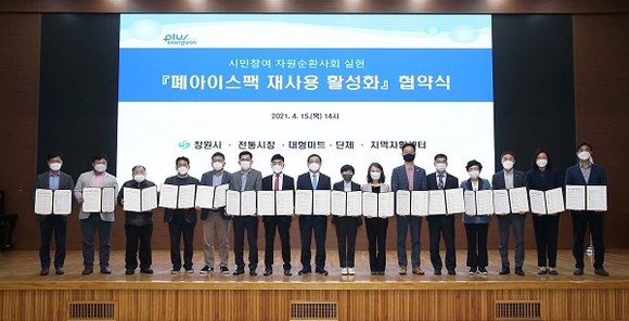 경남 창원시는 15일 시민홀에서 관내 전통시장·대형마트 10곳, 사회단체 2곳, 지역자활센터 3곳과 '폐아이스팩 재사용 활성화' 협약을 체결했다.