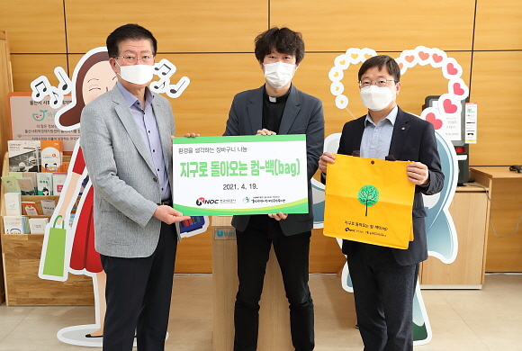석유공사에 따르면 이번 활동은 ESG(Environment Social Governance) 경영과 연계해 ‘지구로 돌아오는 컴백(bag)’ 사업으로 재사용 가능한 에코백을 울산지역 복지관에 전달했다.