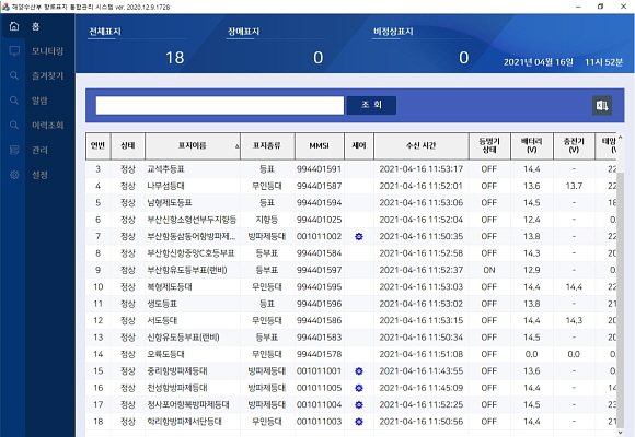 항로표지 관리 운영시스템은 등명기 점·소등, 축전지 전압, 태양전지 전압, 등명기 전류, 표지 위치 등 항로표지 상태 정보를 실시간으로 원격감시, 제어하는 시스템이다.