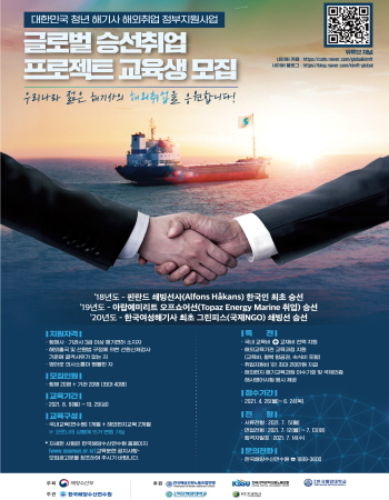 한국해양수산연수원이 국내 청년 해기사의 글로벌 역량을 높이고 유럽 등 해외 주요선사 취업 지원을 위한 ‘2021 글로벌 승선 취업 프로젝트’에 참여할 교육생을 모집한다고 20일 공고했다.
