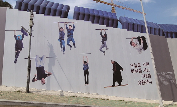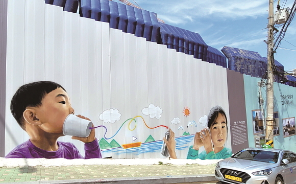 한편 아미 4지구 청년 행복주택 공사장은 서구 아미동에서 감천문화마을로 이어지는 옥천로 161일대에 위치해 있다. 이번 가림막 전시는 지난해 5월 착공부터 기획과 작품논의 과정을 거쳐 작가들의 재능기부 등을 통해 지난 15일 조성을 마치고 공개됐다.