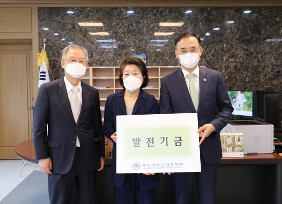 이에 차정인 부산대 총장은 “정영숙 동문님께서 출연해주신 발전기금은 약대 지원으로 학생들의 학업과 발전을 위해 소중하게 쓰이도록 하겠다”고 감사 인사를 전했다.