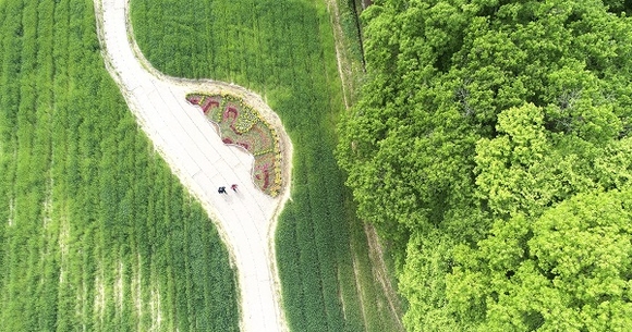 초여름 날씨를 보인 22일 경남 함양군 상림공원 청보리밭에서 초록빛 청보리 물결이 관광객들을 유혹하고 있다. (사진=함양군 제공)