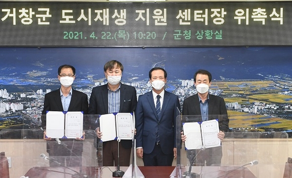 경남 거창군은 22일 군청 상황실에서 구인모 군수 및 경남도립거창대학 하종한, 주우일 교수 등 12여 명이 참석한 가운데 거창군 도시재생지원센터 센터장 위촉식을 가졌다.