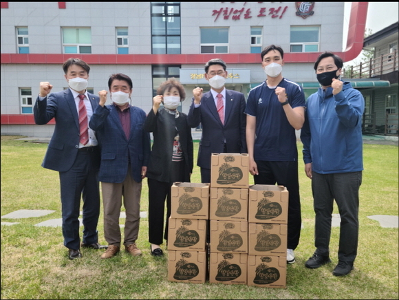 경남FC 메인스폰서인 농협은행 경남본부 특별 이벤트… 훈련 중인 선수 위해 함안특산물 흑미수박 전달