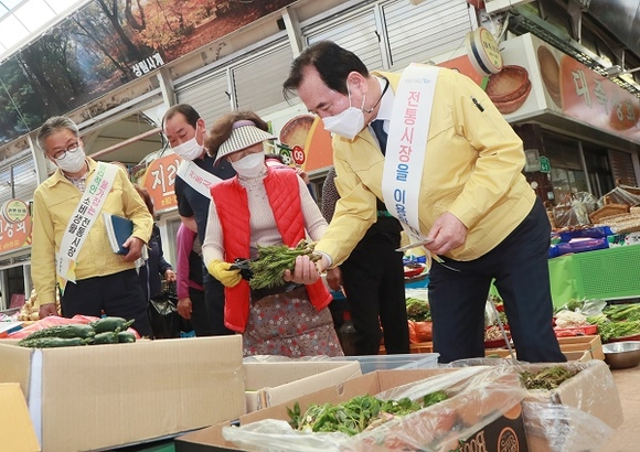 특히 어려움을 겪고 있는 관내 소상공인들에게 힘을 실어주기 위해 지난해 코로나19 확산으로 한동안 운영하지 않았던 '시장가는 날'을 22일 재개했다.
