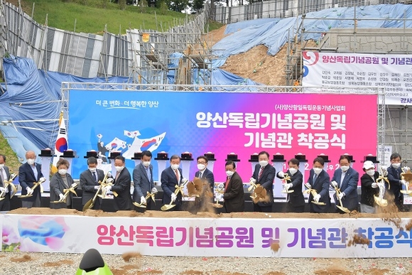 36만 양산시민들의 숙원사업인 '양산독립기념공원 조성 및 기념관 건립공사' 착공식이 22일 교동 306번지 일원에서 개최됐다.
