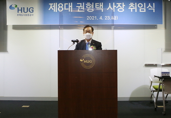 주택도시보증공사(HUG)가 지난 23일 본사가 위치한 부산국제금융센터(BIFC)에서 권형택 신임 사장의 취임식을 열었다고 26일 밝혔다.