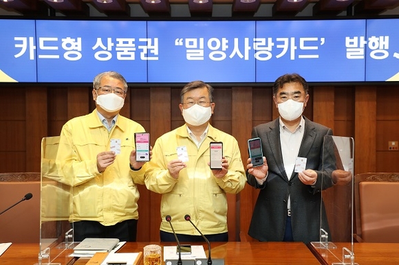 경남 밀양시는 소비자 편의 도모를 위해 카드형 상품권 '밀양사랑카드'를 출시했다고 27일 밝혔다.