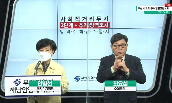부산시 방역당국은 27일 오후 1시 30분 유튜브 등으로 코로나19 일일 온라인 브리핑을 열고 신규확진자가 지난 26일 오후 7명, 27일 오전까지 27명 나와 누계 4966명 기록했다고 발표했다.