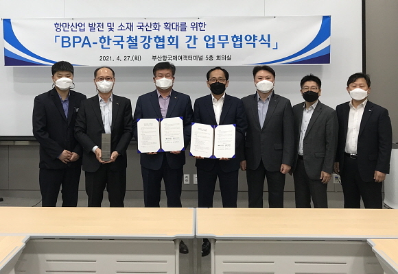 부산항만공사(BPA)가 지난 27일 오후 부산항국제전시컨벤션센터에서 한국철강협회와 ‘항만산업 발전, 소재 국산화 위한 협약’을 체결했다고 28일 밝혔다.