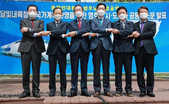 6인의 시도지사는 공동호소문에서 “인류 문명사와 국토개발의 경험을 통해 볼 때 낙후지역 발전을 견인하고 지역간 소통과 화합을 촉진하는 가장 효과적인 수단은 철도와 같은 필수 교통 인프라를 국가가 균형있게 구축하는 것”이라며 “남부내륙철도 건설을 지난 대통령 선거에서 영호남 상생협력 대표공약으로 약속하셨고, 이에 대해 영호남 시도민들은 큰 기대와 희망을 걸어왔다”고 밝혔다.