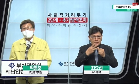 박형준 부산시장이 29일 오후 1시 30분 유튜브 등으로 온라인 기자회견을 열고 오늘 ‘제3차 비상경제대책회의’에서 결정된 부산기업 정책자금 확대, 신산업 대전환 지원 등의 방안을 발표했다.