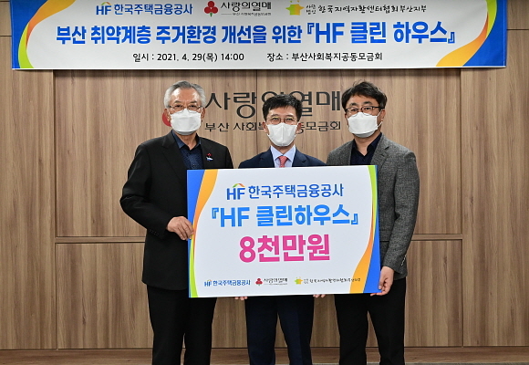 한국주택금융공사(주금공, HF)는 본사가 소재한 부산지역의 취약계층 주거환경 개선과 사회적 일자리 창출을 위해 부산사회복지공동모금회에 ‘HF 클린하우스 사업 지원금’을 기부했다고 29일 밝혔다.