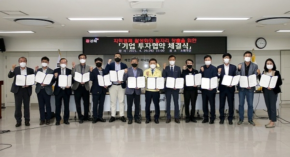 경남 김해시는 29일 시청 소회의실에서 기계, 금속, 자동차 부품 등 주력산업 분야 13개 기업과 562억 원 규모의 투자협약을 체결했다고 밝혔다.