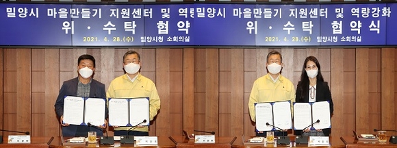 경남 밀양시는 일반농산어촌개발사업의 안정적이고 지속적인 추진과 성공적인 정착을 위해 지난 28일 시청 소회의실에서 사단법인 밀양다움 및 로컬인재진흥회와 위·수탁 협약을 체결했다.