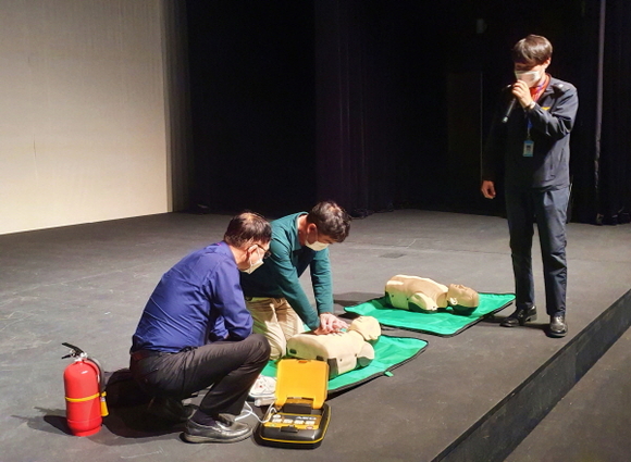 김해문화재단 김해문화의전당은 지난 29일 직원을 대상으로 산업안전보건 교육과 소방 교육을 실시했다. 이날 김해문화의전당 근무 직원 80여 명이 참석한 가운데 13시부터 2시간에 걸쳐 교육이 이뤄졌다.