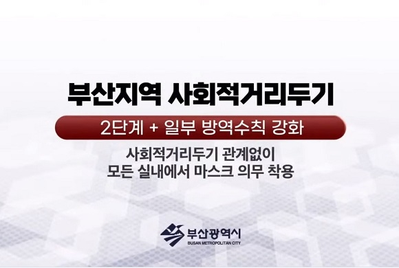부산시가 코로나19 감염병에 따른 ‘사회적 거리두기’ 조치의 현행 2.0단계를 내달 23일까지 2주간 더 연장하기로 했다고 30일 발표했다.