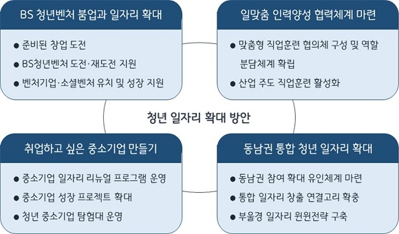 부산 청년의 취업을 위한 역외유출을 완화하기 위해 취업하고 싶은 중소기업 만들기 등의 방안도 필요하다고 지적했다. 부산의 고용상황이 좋을 때는 부산 소재 대학 졸업자의 수도권 취업이 감소하는 경향을 나타냄에 따라 ‘좋은 일자리’ 확대를 위한 노력을 강화해야 한다는 것이다.