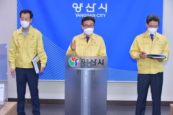 김일권 시장은 3일 오전 긴급브리핑을 열고 양산시 코로나19 관련 사회적 거리두기 조치사항에 대해 설명했다.