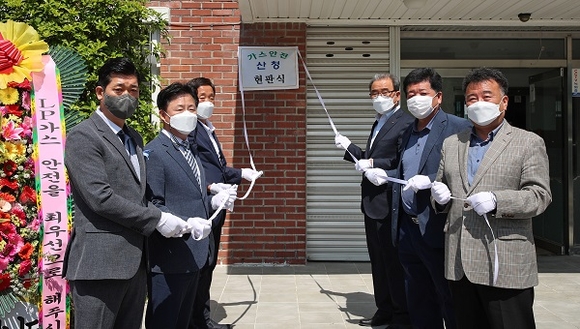 3일 산청읍 차탄농공단지 내 협의회사무실에서 열린 현판식에는 권양근 산청 부군수와 정영모 가스안전공사 경남서부지사장, LP가스시설 안전관리대행 사업 종사자 등이 참석했다.