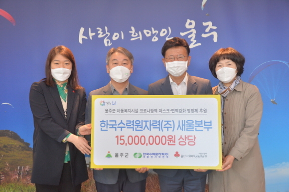 한국수력원자력 새울원자력본부는 어린이날을 맞아 3일 오전 울주군청에서 지역아동센터와 다함께 돌봄센터 아동을 위해 1500만원 상당의 방역물품을 전달했다.
