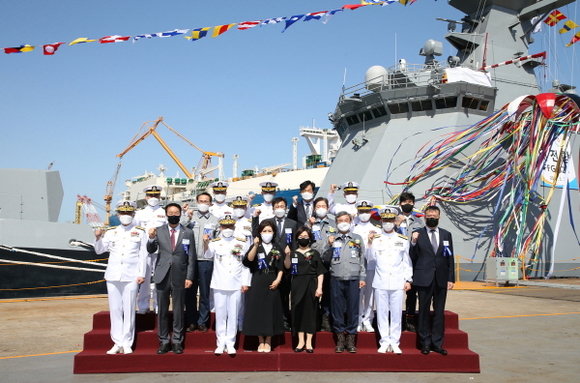 한편, 이날 진수식을 마친 호위함은 마무리 의장공사와 운항테스트 등 다양한 전력화 시험을 거쳐 2022년 말 건조를 마치고 한국 해군 측에 인도돼 실전 배치될 예정이다.