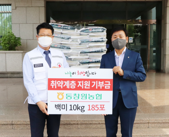 동창원농협은 지난 3일 대한적십자사 경남지사에 취약계층 지원을 위한 백미 10kg 185포(555만원 상당)를 전달했다.