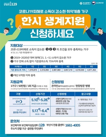 이에 부산시는 정부의 한시 생계지원 사업 추진에 맞춰 전담팀을 구성하고 원활, 신속한 지원금 지급에 나설 계획이라고 6일 밝혔다.