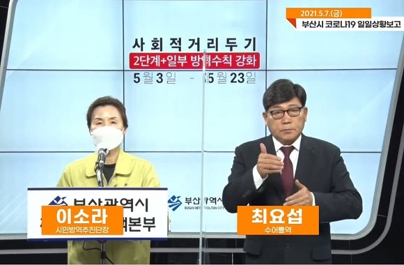 이소라 시민방역추진단장은 “울산지역에서 급증하고 있는 변이 바이러스는 전파 속도가 빠른 점이 특징이기에 역학조사도 최대한 신속히 진행하고자 노력하고 있다. 이에 부산시는 영국발 변이 바이러스를 집중적으로 격리 관리 및 접촉자에 대해서도 해제·능동감시 전 검사를 진행하고 있다”며 “백신 접종 현황은 1분기 대상자 중 1차 접종률 90%, 2차 접종률 5.9%를 기록했으며 2분기 대상자는 1차 42.4%, 2차 4.5% 접종률을 기록했다. 어제 이상반응 신고 건수는 총 53건으로 이 가운데 1건의 사망사례가 나왔으며 숨진 이는 기저질환을 앓는 것으로 파악된다”고 전했다.