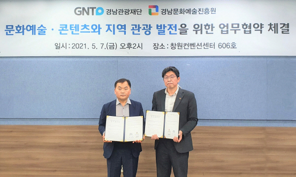 경남문화예술진흥원이 7일 창원컨벤션센터에서 경남관광재단과 업무협약을 체결했다.