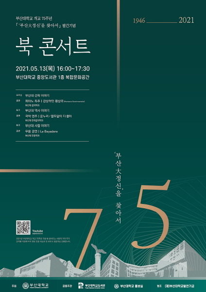 75주년 개교기념일(5.15)에 맞춰 열리는 행사는 부산대 건학 이야기를 시작으로, 역사와 사람에 대한 기억으로 이어진다. 행사 중간에는 부산대 음악학과와 한국음악학과, 무용학과의 공연이 열린다.