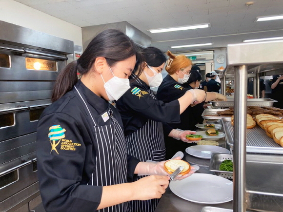 이번 재능기부에는 조리예술학부 최영호 교수와 이수진 교수, 수저락 동아리 학생 20명, 해운대 청소년문화의집이 참여해 도라지청을 넣은 떡갈비 버거를 손수 조리했다.
