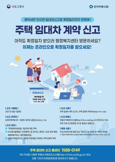이번에 시행되는 주택 임대차 신고제의 신고대상은 '임대차 보증금 6천만원 또는 월차임 30만원'을 초과하는 주택임대차보호법 상 주택이며, 신고기한은 임대차 계약의 계약체결일부터 30일 이내다.