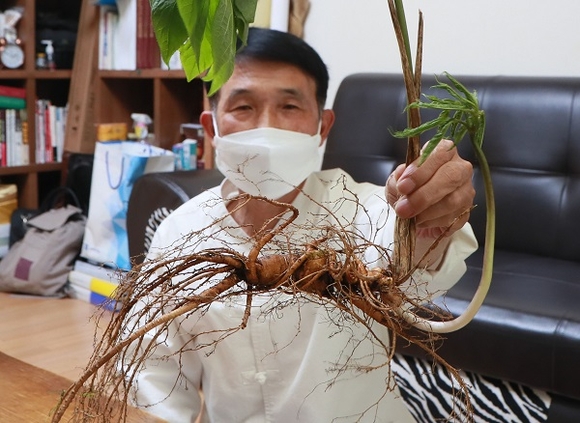 2021 함양산삼항노화엑스포 개최를 앞두고 있는 '산삼의 고장 함양'에서 100년 이상 된 천종산삼이 발견돼 큰 화제를 모으고 있다.