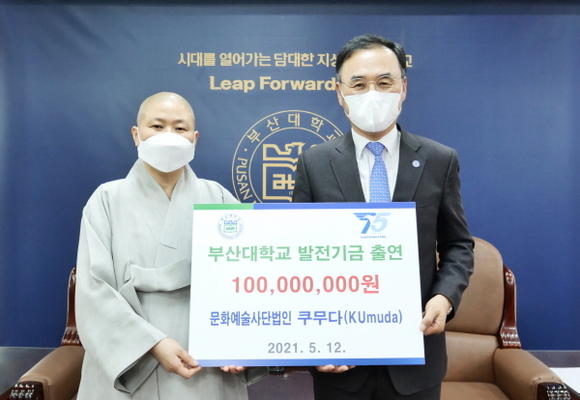 (사)쿠무다 이사장인 대운사 주지 주석(珠昔)스님은 지난 12일 오후 부산대를 방문해 약정식을 갖고 올해 부산대 예술대학 학생들의 학업활동비(장학금 및 예술 활성화)로 써달라며 차정인 부산대 총장에게 1000만원을 전달했다. 쿠무다는 매년 1000만원씩 10년간 1억원을 기부하기로 했다.