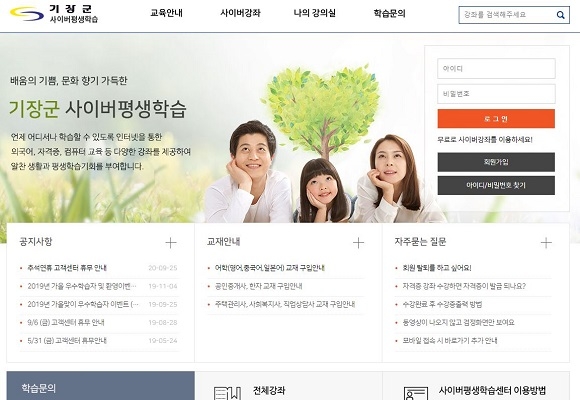 신청은 기장군평생교육센터 홈페이지 내 ‘사이버 평생학습’ 사이트에서 상시로 신청할 수 있다.