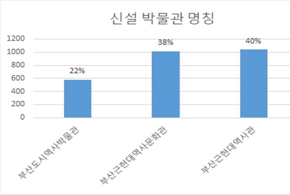 이후 SNS 온라인 설문조사, 리서치 용역조사 등을 시행한 결과, ‘부산근현대역사관’이 40% 득표로 1위를 차지했다. 이어 ‘부산근현대역사문화관’이 38%로 2위를, ‘부산도시역사박물관’이 22%로 3위를 기록했다.