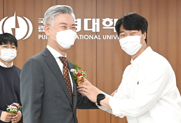 국립부경대학교 총학생회가 스승의 날을 앞두고 14일 장영수 총장에게 카네이션을 전달했다. 이날 조영석 총학생회장 등 총학생회 일행은 이날 오전 대학본부 5층 총장실을 찾아 장영수 총장에게 카네이션을 전달하고 감사 인사를 전했다.