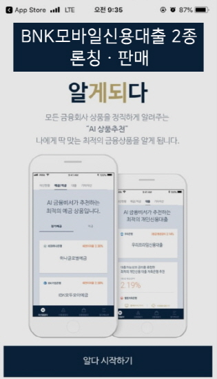 BNK경남은행은 종합자산관리앱(App) 알다가 제공 중인 ‘대출비교하기’에 ‘BNK모바일신용대출 2종’을 론칭해 판매 중이라고 14일 밝혔다.