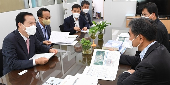 먼저 국토교통부를 찾은 구인모 군수는 백원국 국토정책관, 주현종 도로국장, 이정기 도로건설과장을 만나 군민의 오랜 숙원사업인 '거창 남부우회도로 건설사업'에 대해 지역 균형발전과 지역산업 발전에 따른 교통수요에 선제적으로 대응할 수 있도록 조기 착공을 건의했다.