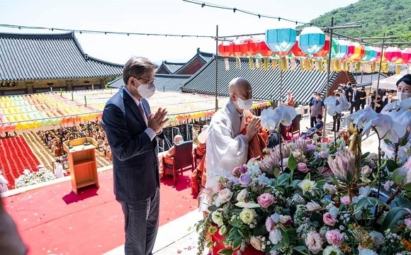 그러면서 박 시장은 “코로나19 사태란 전례 없는 위기 앞에서도 우리 불교계는 가장 지혜로운 모습을 보여주고 있다. 지난해 부처님 오신 날에는 수천년 한국 불교 역사상 처음으로 석가탄신일 봉축 행사를 한 달이나 연기하는 큰 결단을 내렸던 것을 기억한다”며 “우리 부산의 큰 사찰들에서 먼저 그렇게 나섬으로 불교계 전체가 코로나19 극복에 함께 나섰다”며 감사한 마음을 전했다.