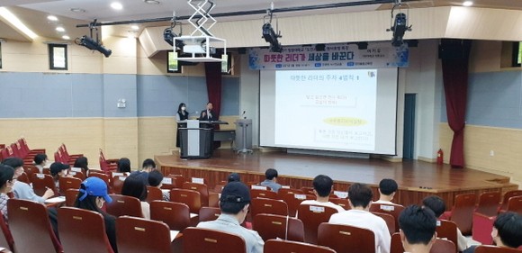창원대학교는 이기우 전 교육부 차관과 NH인문홀 ‘도전과 창조’ 명사초청특강을 가졌다고 20일 밝혔다. 특강은 ‘따뜻한 리더가 세상을 바꾼다’를 주제로 진행됐다.